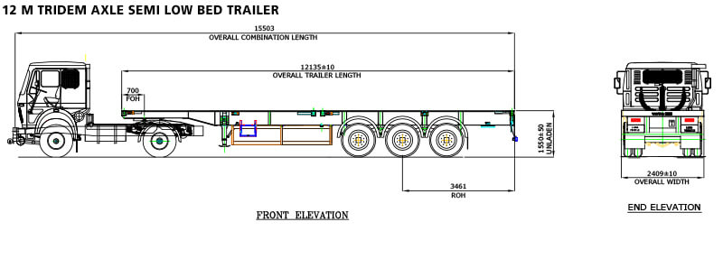| OVERALL LENGTH OF TRAILER | 12135 10 mm |